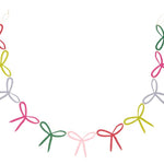 Deck the halls, mantles, and doorways in festive color with the Brightly Bow Garland, and colorful metal garland in bright hues. Each bow is a flat, laser cut metal bow securely connected to each other by small jump rings. Red, citron, pale bluish grey, green & pink make a statement when styled with other bows from the holiday collection. This versatile garland is perfect for the Christmas season but can be styled for other occasions throughout the year, like birthday parties, Galentines gatherings, and more.